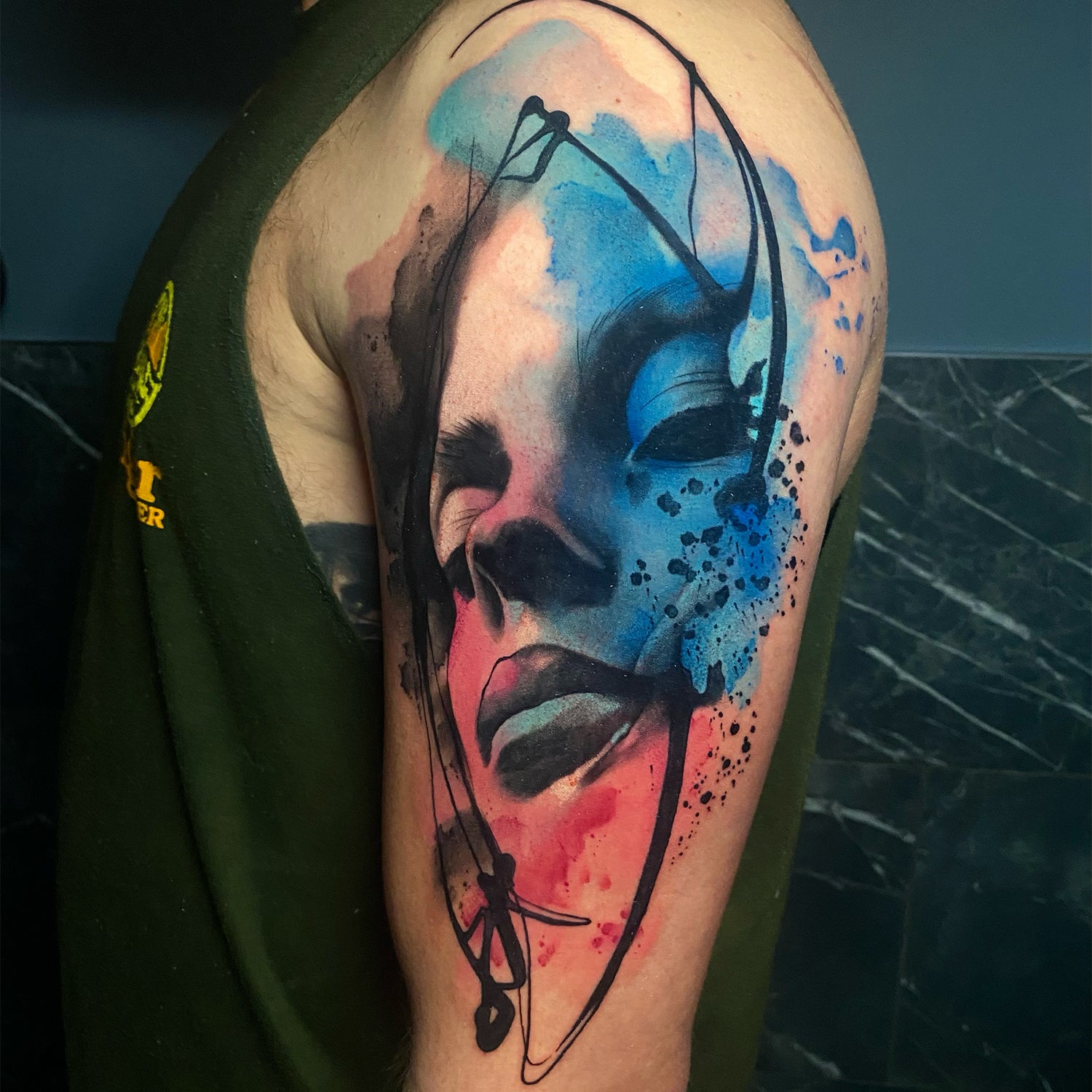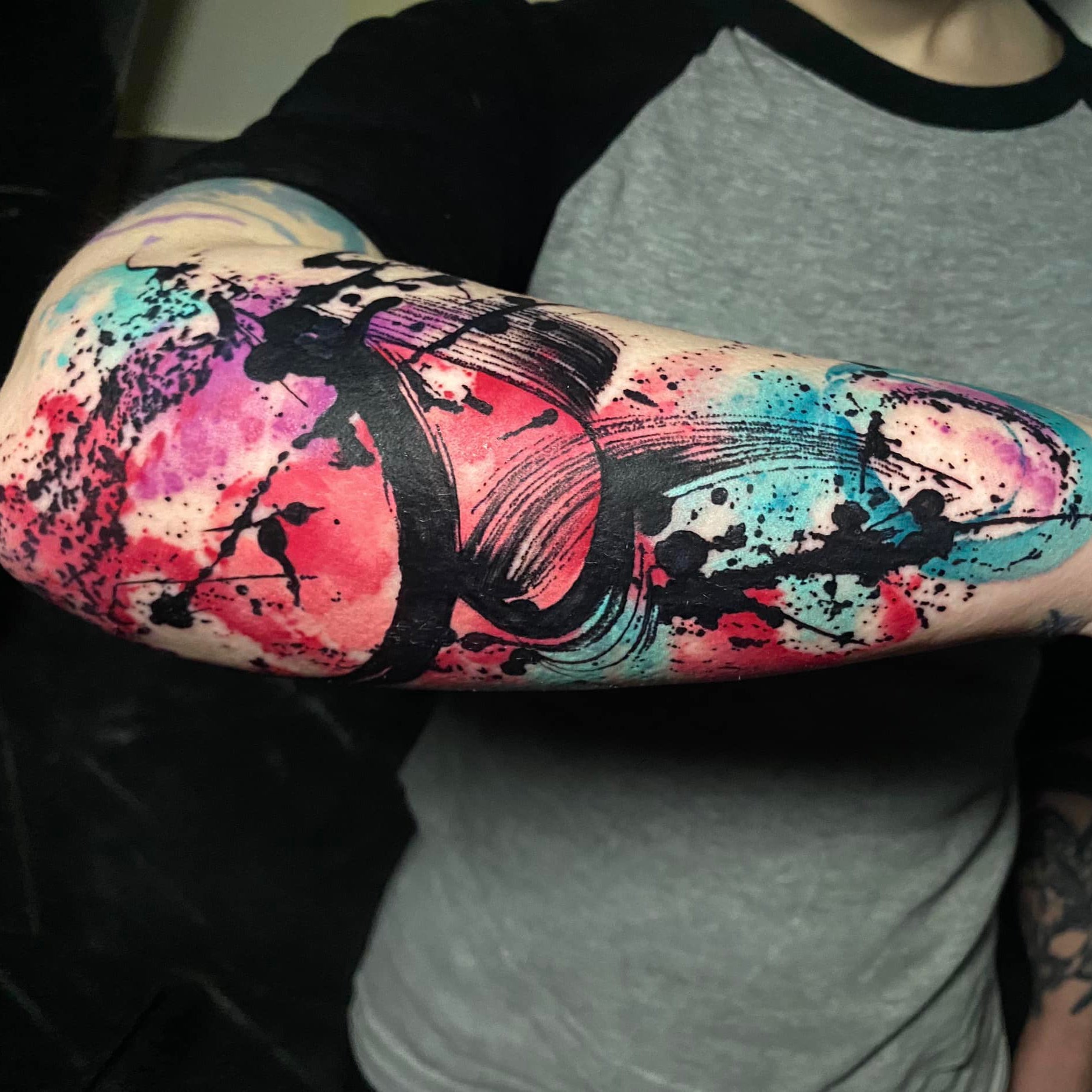 When i'm not tattooing I enjoy painting with water colours. My abstract colour work incorporates this unique style into the world of tattoos.